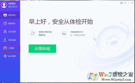 1、 我们打开腾讯电脑管家之后,单击【工具箱】按钮。