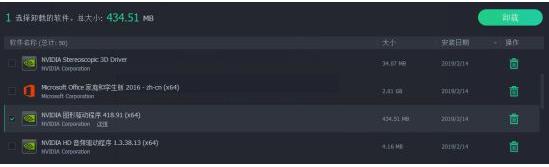 1.找到你更新到最新版的英伟达418版本驱动,点击卸载。