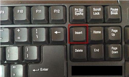 2、我们只要在键盘上找到insert或是INS键,按一下,就可以看到改写变成了插入。