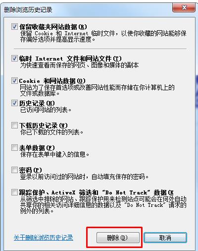 3、选中临时文件、cookie‘历史记录三项,然后点击删除;