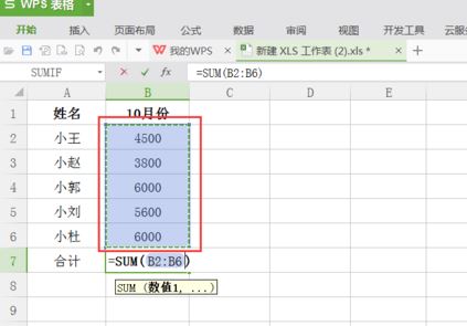 2、选中表格后,在表格中输入“=”,输入求和函数sum,在表格中输入“=sum”后,选中想要计算出和的所有数据即可完成求和!