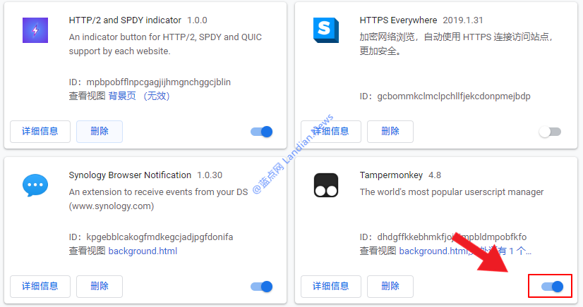 如果你无法访问谷歌浏览器商店可以下载油猴扩展的离线安装包然后再手动安装:下载地址 | 备用下载地址