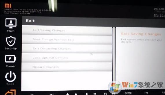 2、选择好之后,在exit选项卡选择第一项,“保存设置并退出”,如下图所示: