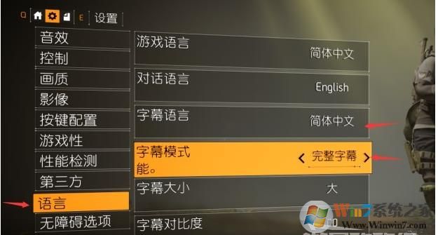 2、选择语言选项,右侧的字幕模式改为完整字幕,字幕语言改为简体中文。