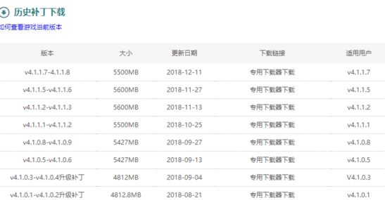 (2)找到“历史补丁下载”,并下载对应版本的补丁。