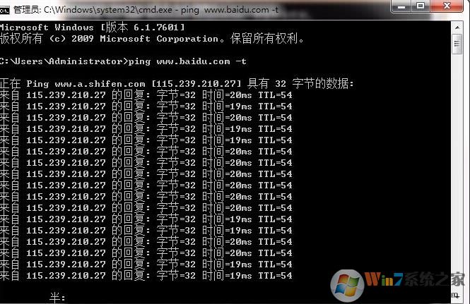 我们可以简单的使用ping命令来看返回时间判断网速状态。