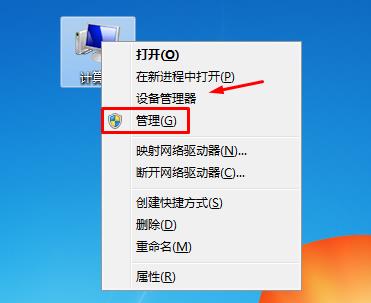 1、右键点击桌面上的“计算机”图标,我们可以打开“管理”,如下图
