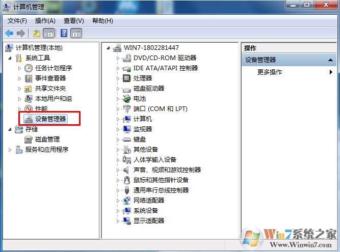 2、打开管理之后,我们就可以看到管理界面中左侧有一个【设备管理器】,点击一下就可以打开。