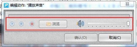 4、在PDF文件界面中想要添加声音的地方点击,就会出现“编辑动作:播放声音”窗口,在窗口中用户可以设置录音,也可以点击“浏览”添加声音文件,如图: