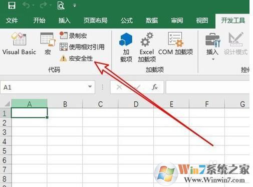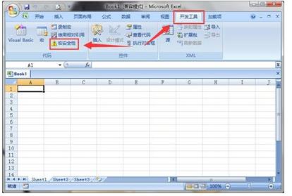 1.首先点击打开excel办公软件,然后依次点击打开开发工具 - 宏安全性。如下图所示