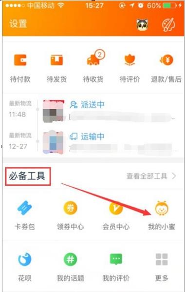 2、在中间位置 必备工具找到,我的小蜜,点击进入