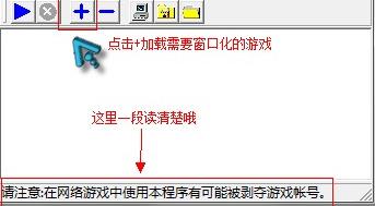 2、点击加号添加一个游戏,网络游戏可能会被封号,这个大家要注意