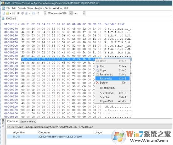 2、用下载的编辑器打开存档文件S0000.sl2,选中00000310到0010030F的数据。