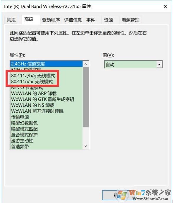 6、然后点击【高级】,在高级属性里面查看无线协议的标准,如果是802.11b、802.11g表示不支持5G,如果是802.11a、802.11ac,则说明支持5G。