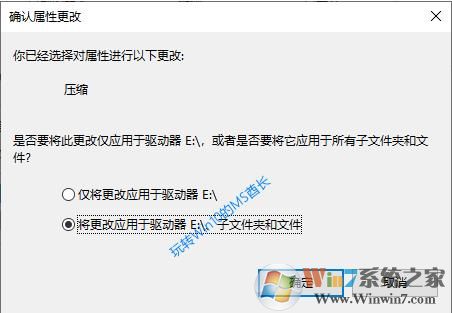 如果你仅仅想压缩E: 磁盘分区根目录下的内容,那么请选中上面的“仅将更改应用于驱动器 E:\”。