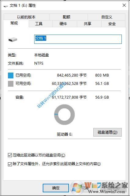 例如你想要压缩某个磁盘分区,那么就在该磁盘分区上点击右键,选择“属性”打开磁盘属性窗口,默认显示的是“常规”选项卡,在底部可以看到“压缩此驱动器以节约磁盘空间”选项(见上面的图 1 )。
