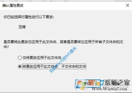 默认选中的是“将更改应用于此文件夹、子文件夹和文件”,该选项可以把该文件夹及其子文件夹里的所有内容都压缩,并且以后保存到该文件里的内容也会自动压缩。