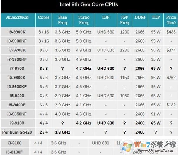 首先了解下,首发带F后缀的处理器都有哪些,具体型号如下: