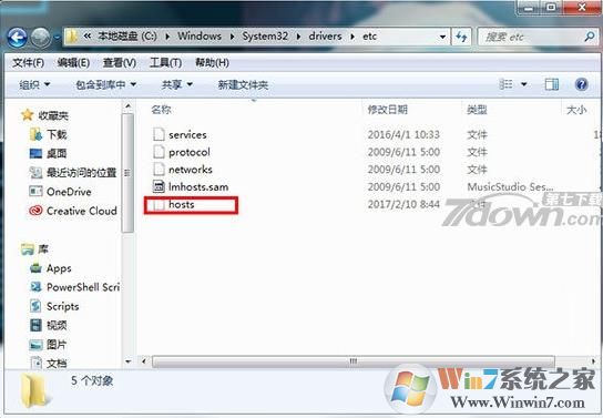 2、接下来我们要开始破解了,打开“C:\Windows\System32\drivers\etc”目录,找到“hosts”