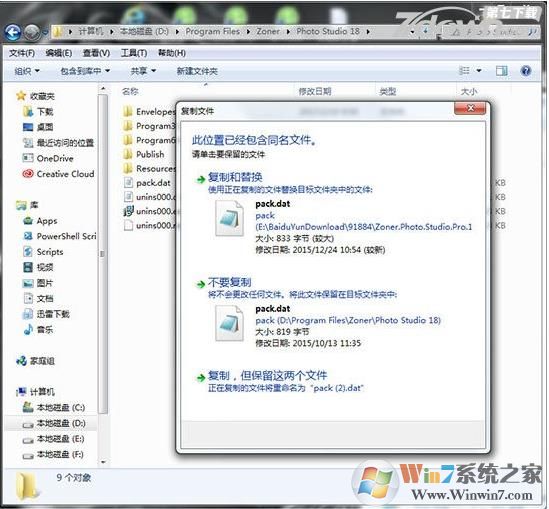4、最后打开安装包“crack”目录,将破解文件“pack.dat”复制到安装目录下覆盖源文件即可,默认安装目录为C:\Program Files\Zoner\Photo Studio 19\