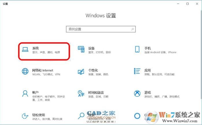 2、在 Windows 设置窗口中,我们点击【系统】- 显示、声音、通知、电源;