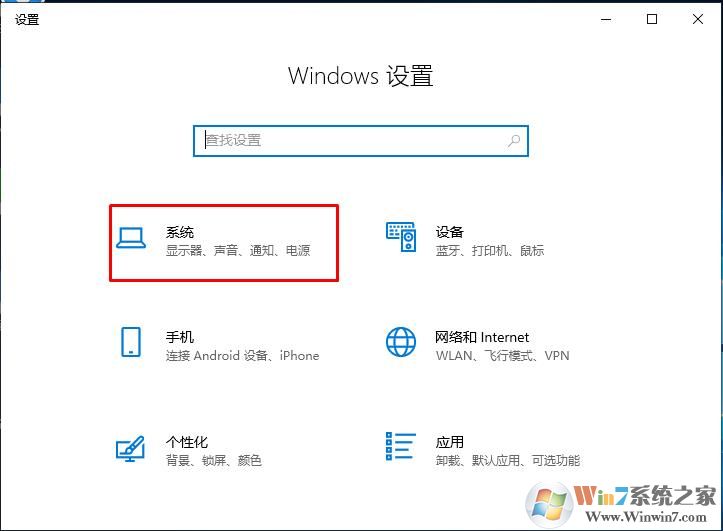 2、在Windows设置里,打开系统选项,如下图红框所示;