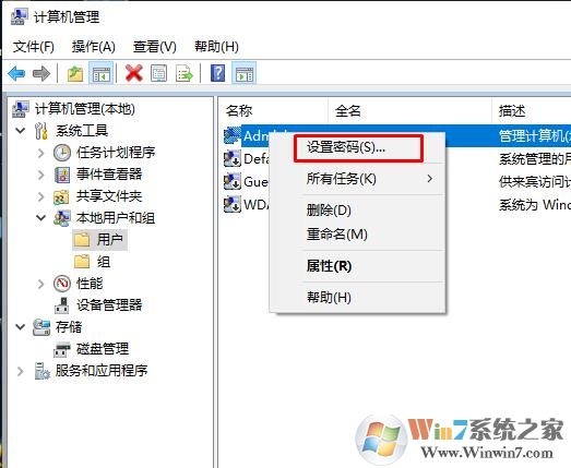 6、然后如果你的用户没有设置密码,那么其它电脑是不能用空密码登录的,可以在管理工具——用户中设置一个密码;