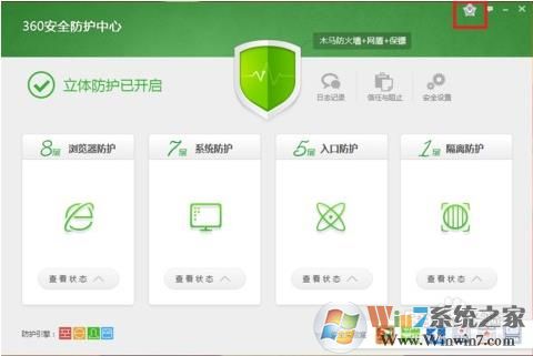 第二步,打开了如图“360安全防护中心”,再点击右上角的“核晶防护”图标;