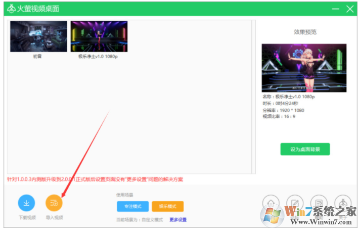 1、首先我们需要一款软件火萤视频桌面 下载后安装,然后点击导入视频;