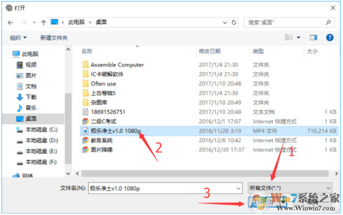 3、选择所有文件后,点击需要导入的视频,最后点击打开。通常可以是mp4等常见格式;