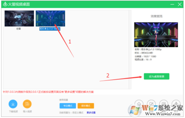 4.在软件窗口选择导入的视频,再点击设为桌面背景即可。