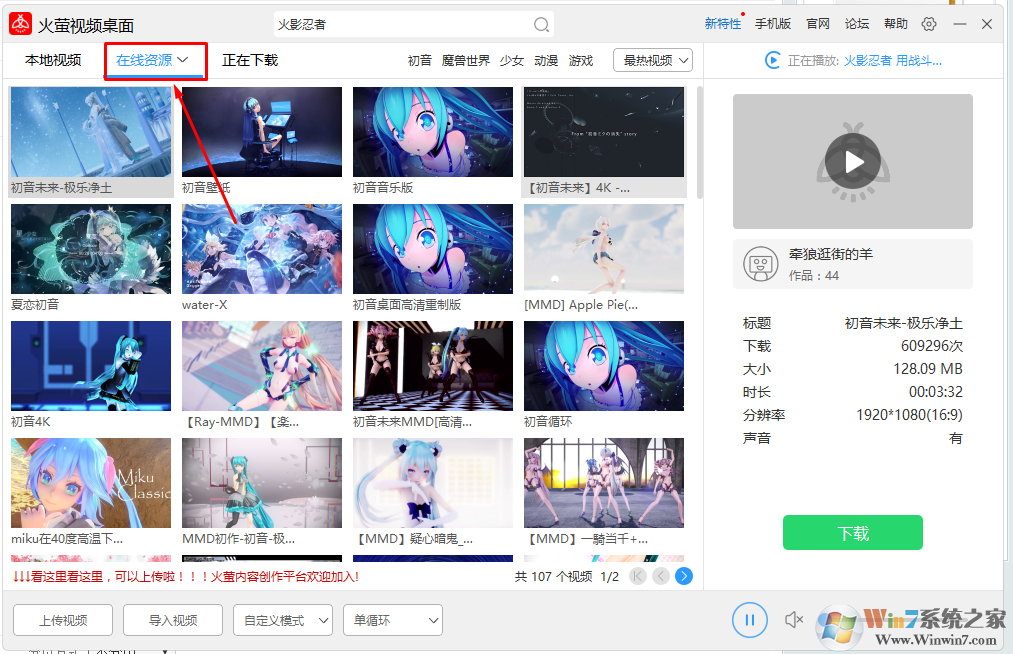2、这时我们导入准备好的视频,如果自己没有视频的话可以直接在视频库种下载视频。
