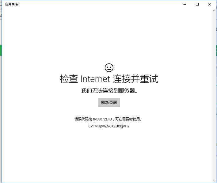 2、如果应用商店开始出现错误代码0x80131500然后跳转到0x80072efd的话