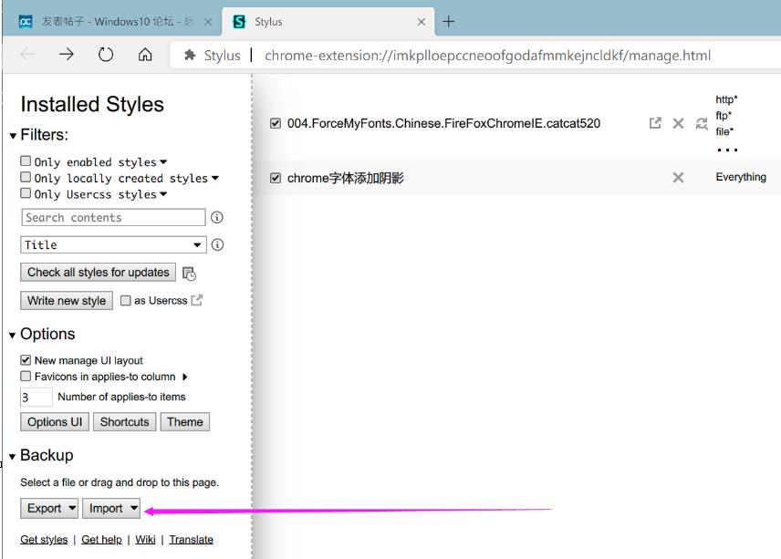 也可以直接在stylus插件里导入我的配置,Backup里选Import style:
