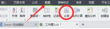 2、点击最上边选项中的“数据”,并且在子选项中点击“分列”,如图: