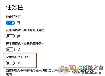 3、此时我们在右侧看一下您是否开启了 “使用小任务栏按钮” 的选项,如果开启了,将此选项关闭,看一下能否解决此问题,如图: