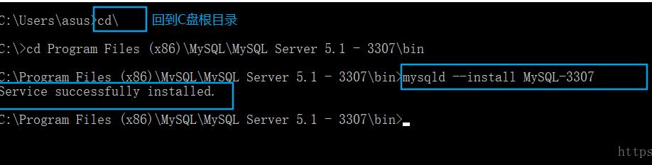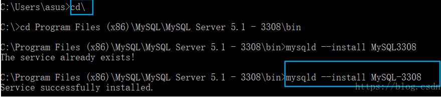进入MySQL Server 5.1 - 3307目录中的bin目录下 运行命令 mysqld –install MySQL-l3307 (服务名 自定义即可)