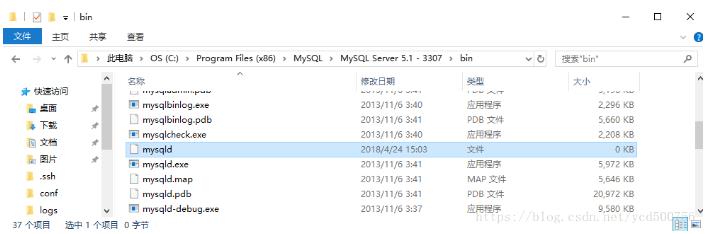 解决办法:bin目录下有个mysqld的空文件,删除即可。