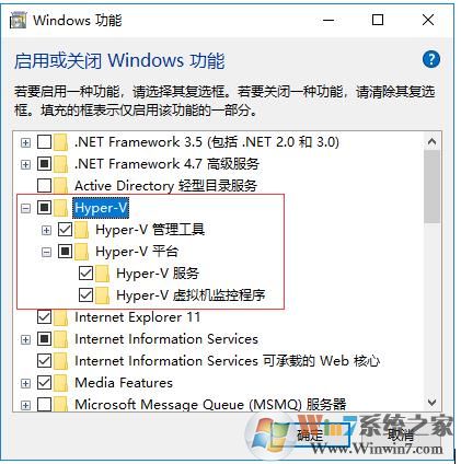 打开控制面板 - 程序和功能 - 启用或关闭Windows功能,勾选Hyper-V,然后点击确定即可,如图: