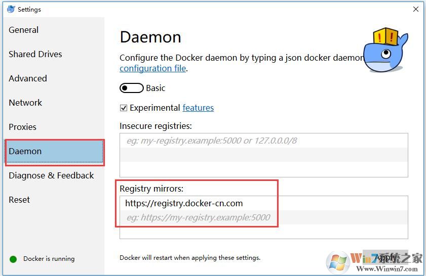 点击托盘处docker图标右键选择-Settings,然后修改如下: