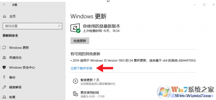 同时用户可以继续放心点击检查更新按钮接收每月的安全更新或累积更新,点击更新并不会下载安装新版本。