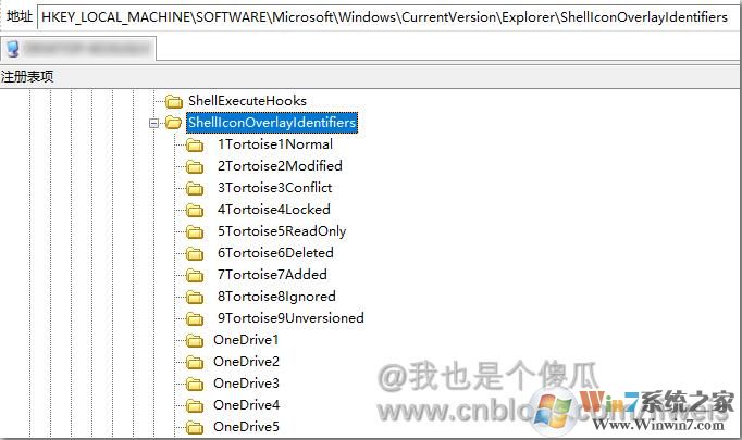 第一步,打开注册表编辑器位置:HKEY_LOCAL_MACHINE\SOFTWARE\Microsoft\Windows\CurrentVersion\Explorer\ShellIconOverlayIdentifiers