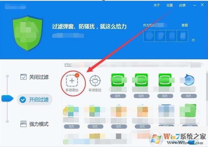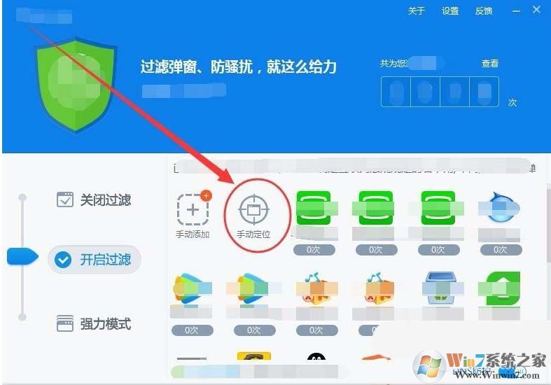3、单击手动定位按钮后,用鼠标单击要过滤的弹窗,即可添加过滤。