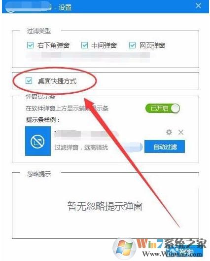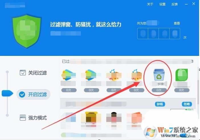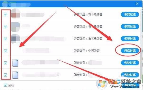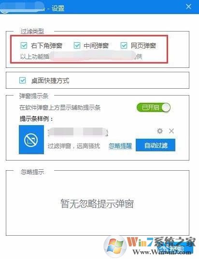 2、设置窗口上方的过滤类型,可以设置过滤右下角、中间弹窗和网页弹窗。