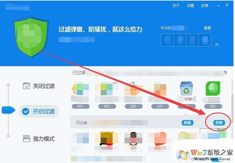 2、单击下方出现的忽略按钮,即可取消过滤。