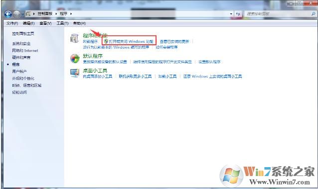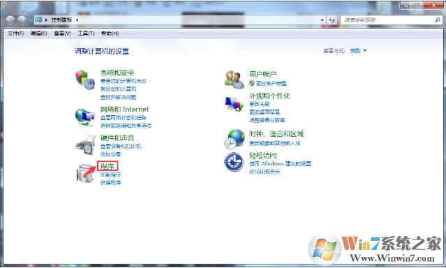 1、进入“控制面板”-“程序”(Win10可以搜索控制面板进入)