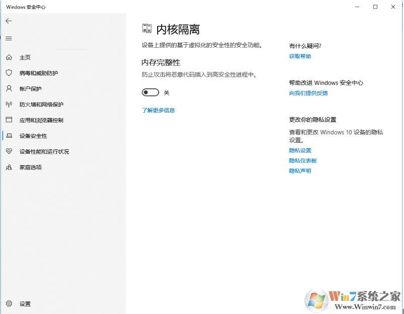 2、在windows defender安全中心中—>设备安全性—>内存完整性 关闭掉就好了。