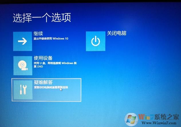 3、接下来电脑重启进入到选择一个选项界面。选择“疑难解答”进入下一页。