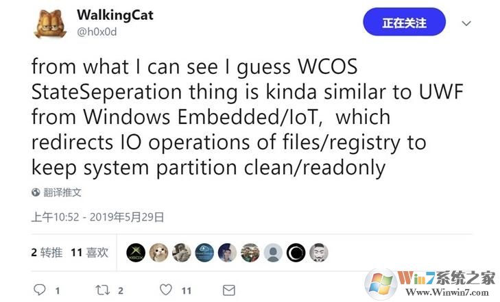 根据WalkingCat的发现,该系统存在Win32桌面模式的ComposableShell,WCOS StateSeperation有些类似Windows Embedded/IoT的UWF,它重定向文件/注册表的IO操作以保持系统分区清洁/只读。