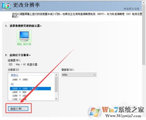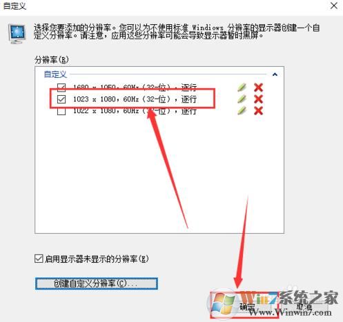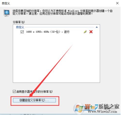 第六步,接下来这里列出的是我们自定义的分辨率,没有的话点击创建自定义分辨率,如下图